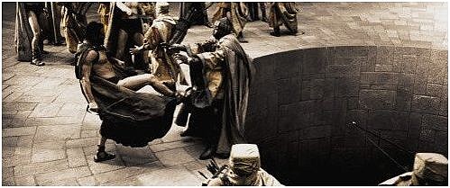 Leonidas, King of Sparta, kills the Persian messenger out of anger