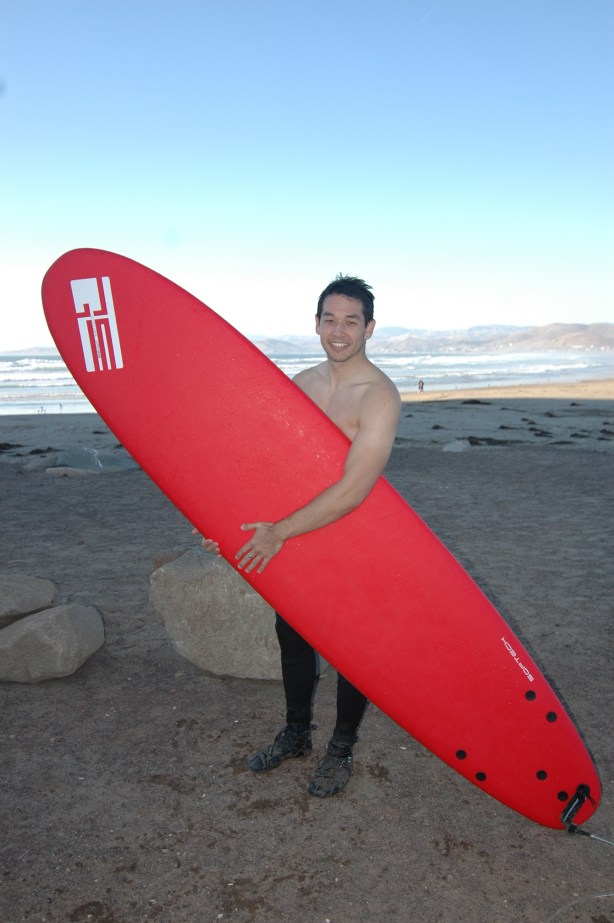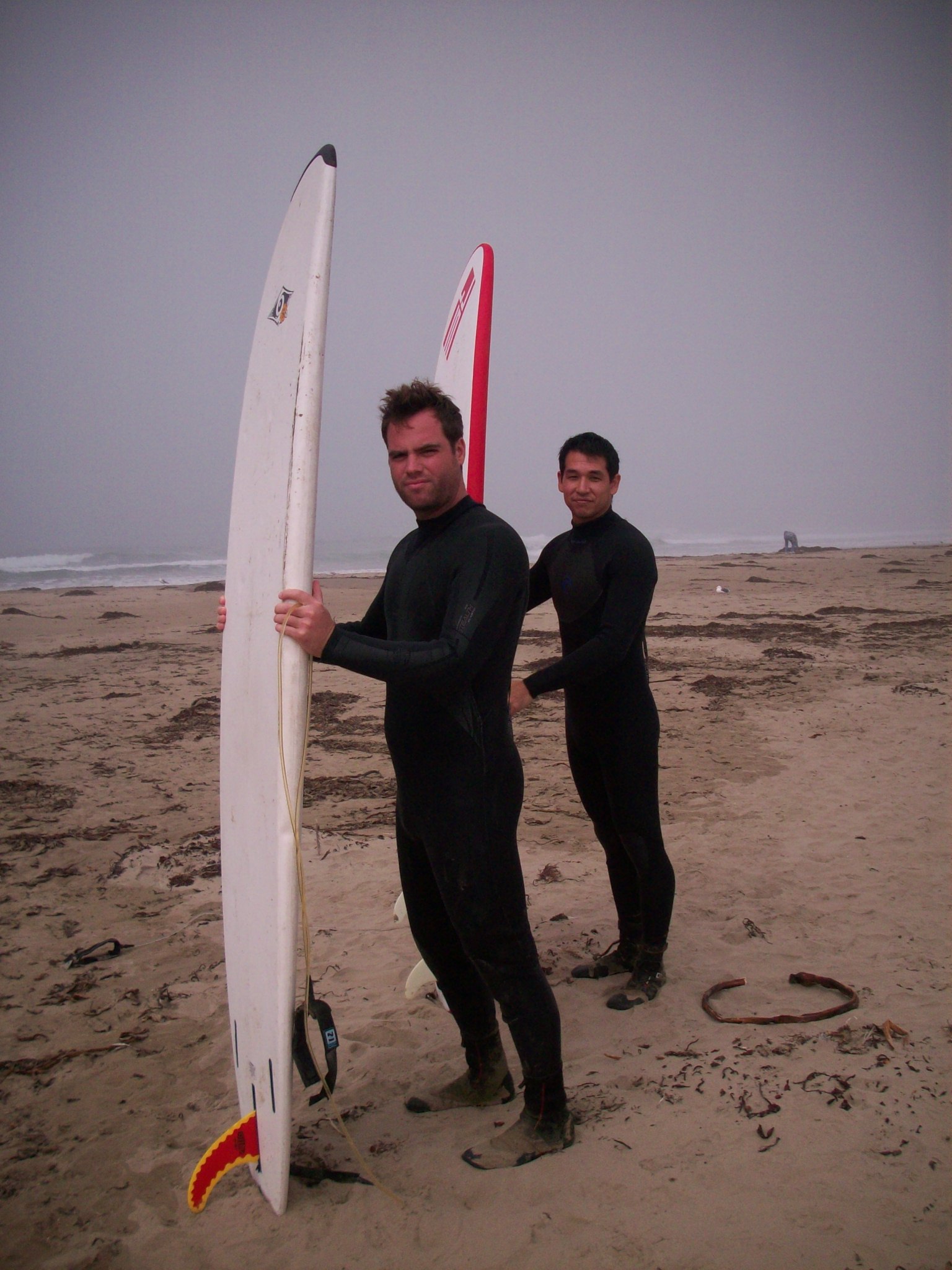 We finally found a good surfing spot at Morro Bay. Franco and I were hesitant to get in because the water is ice cold, but the wet suits proved to be clutch!