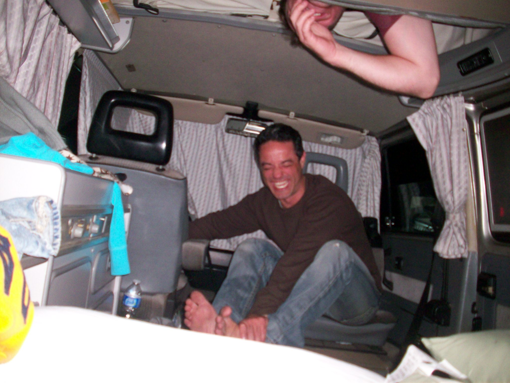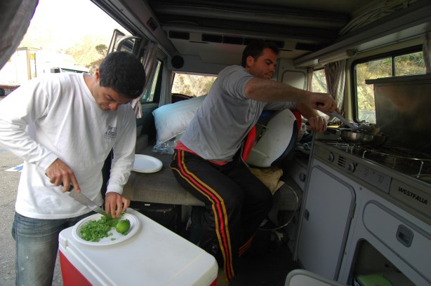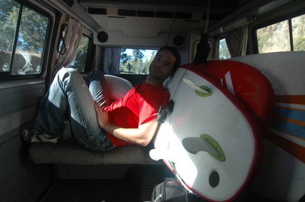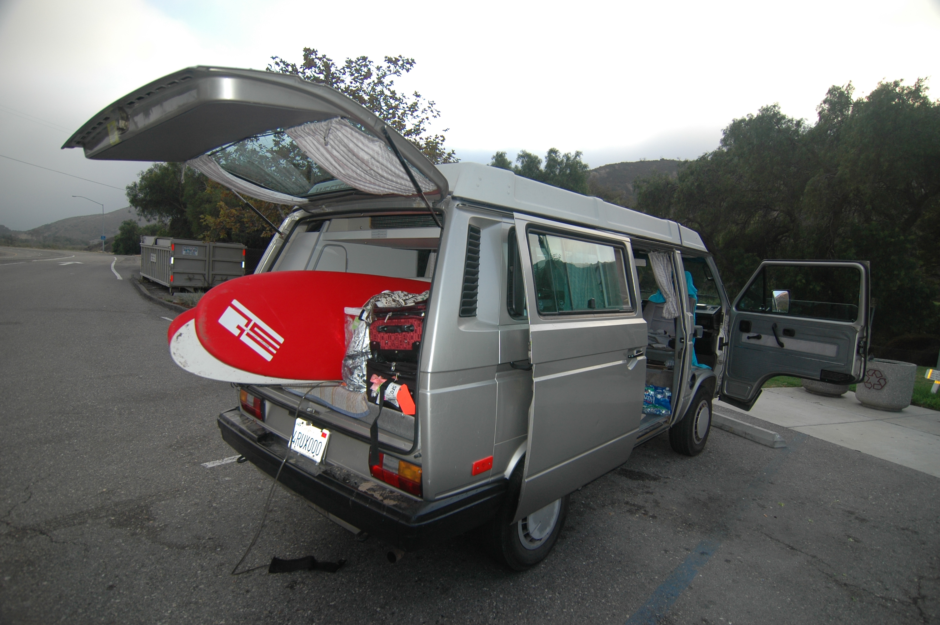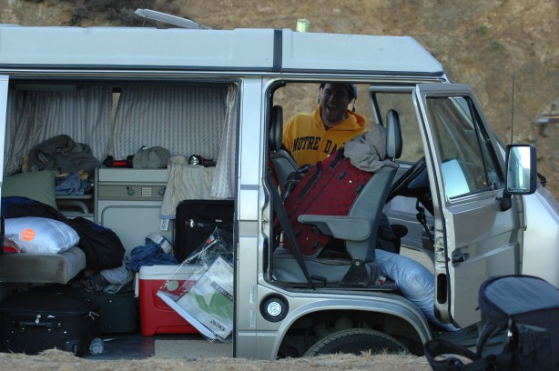 You gotta love the VW Westfalia camper van. Look at all that crap we packed in there.