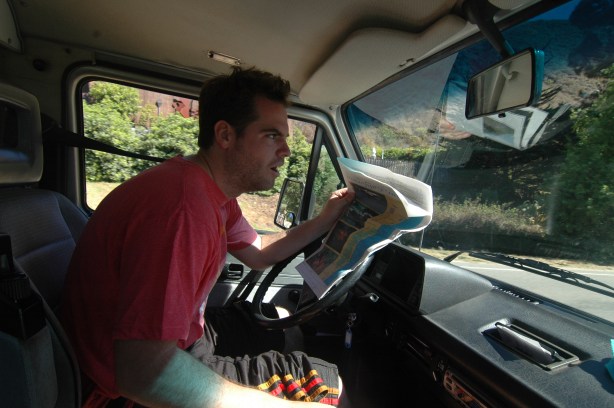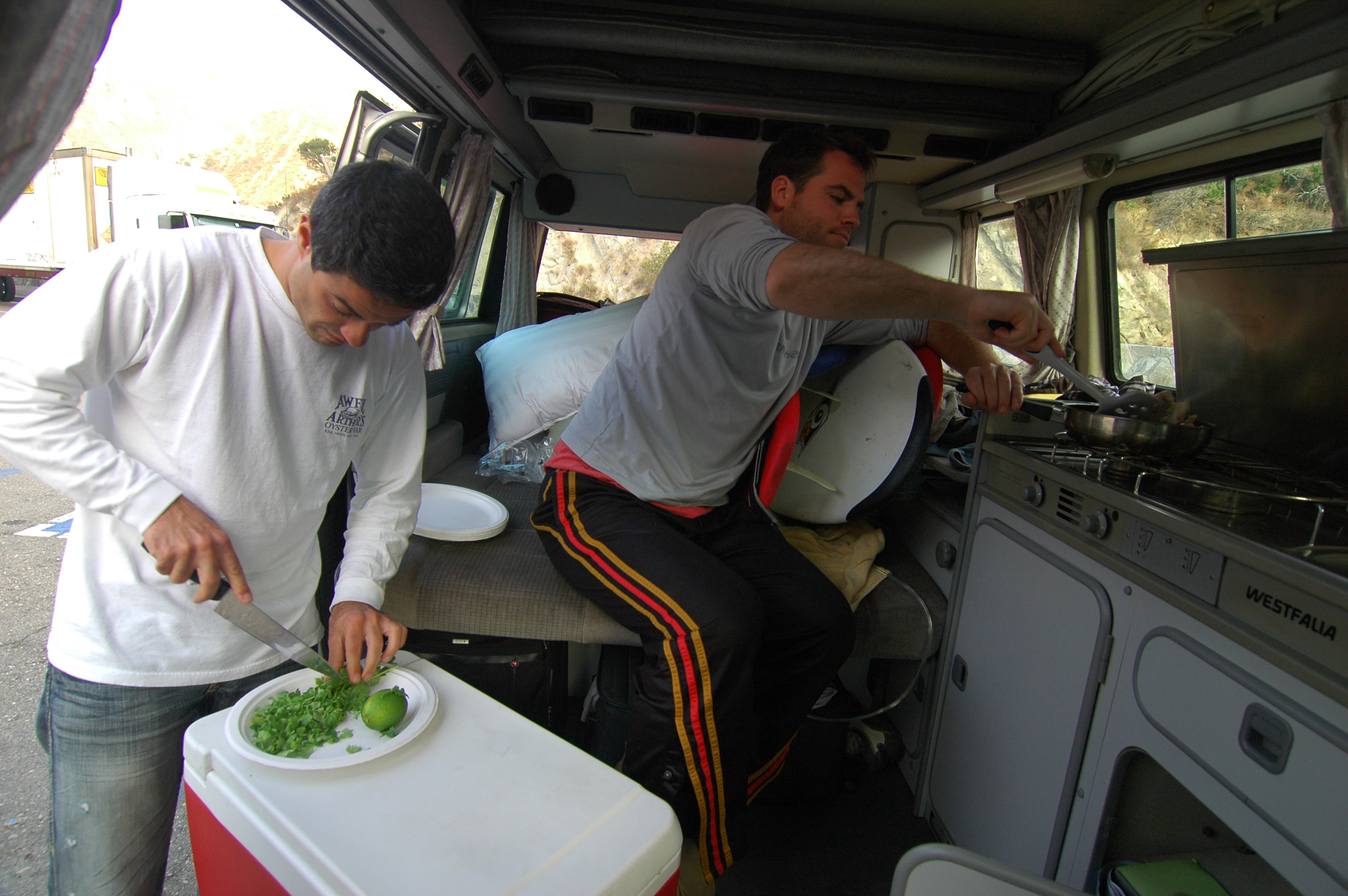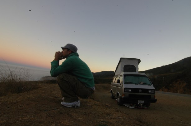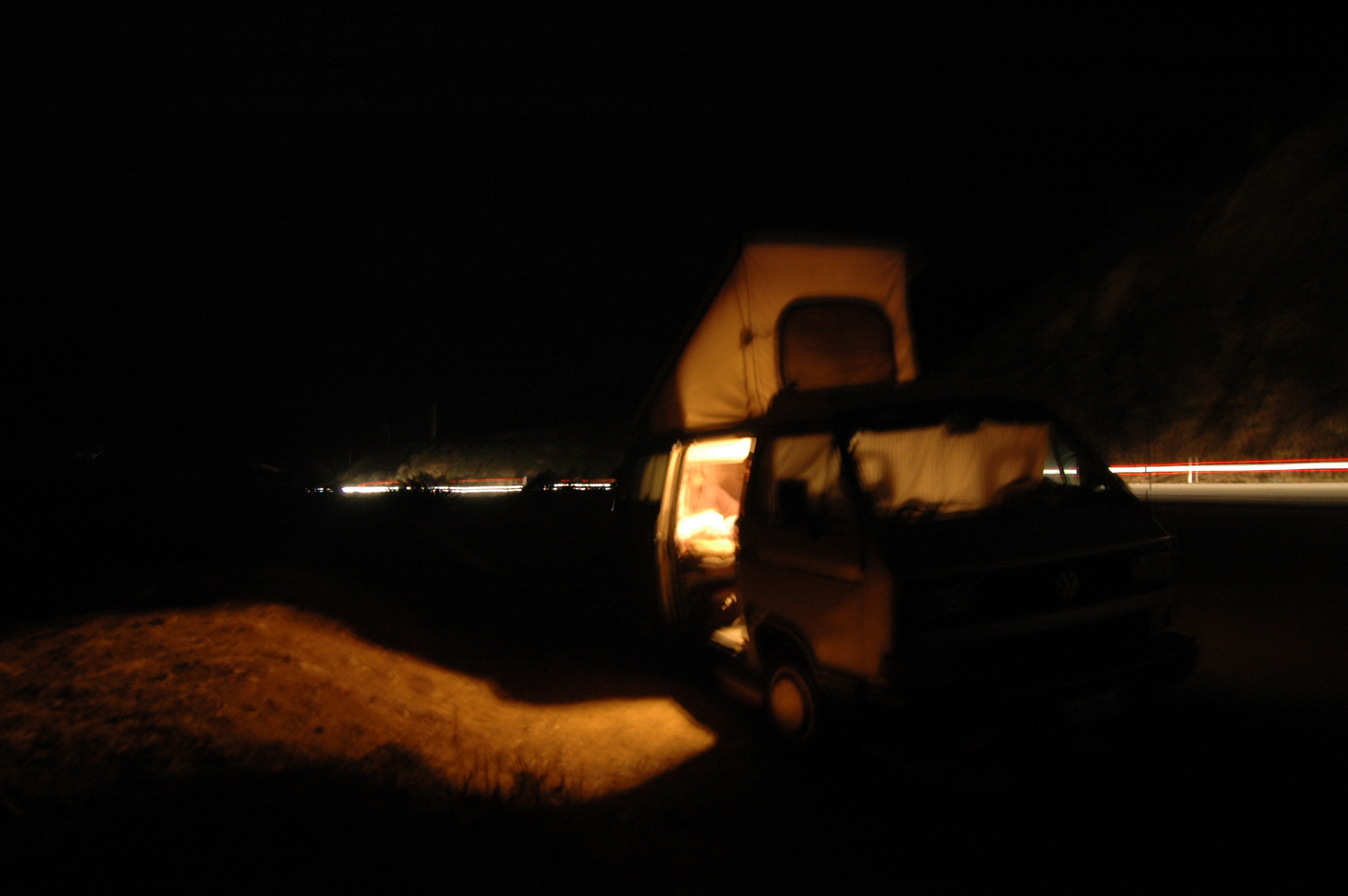 After a long day’s journey from San Fransisco, we pulled over along a turnabout and set up camp.