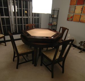 So the first thing I did was plan. I went to a local billiards supply store and scoped out the high end poker tables. I obviously couldn’t afford a $2,000 poker table, but I figured that I might be able to pick up a few tips just by observing what was out there.